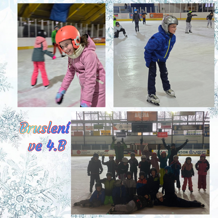 Žáci 4. B absolvovali pět bruslařských lekcí, které plynule navazovaly na výcvik z loňského školního roku. Od samého začátku bylo vidět, že loňské dovednosti nezapomněli – na ledě se pohybovali s jistotou a velkým nadšením. Každou hodinu se zlepšovali a zkoušeli nové pohybové dovednosti. V poslední lekci zvládli i jízdu vzad. Velké poděkování patří rodičům a prarodičům, kteří dětem obětavě pomáhali s přípravou na led a obouváním bruslí, ale i při samotném bruslení. Jejich podpora a trpělivost dodala dětem jistotu a přispěla k tomu, že si celou sérii lekcí naplno užily. Atmosféra byla skvělá a děti odcházely z ledu s úsměvem na rtech a s radostí z pohybu.