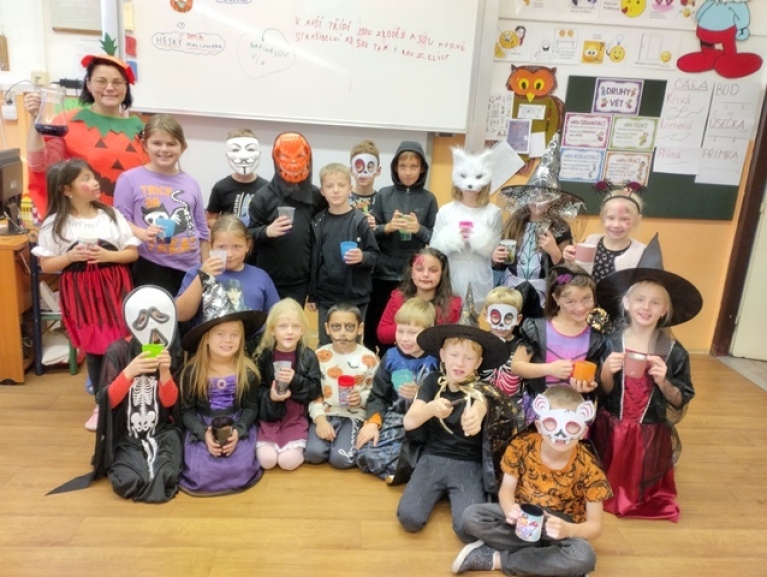Halloweenský den jsme si užili jak se patří. Děti řešily strašidelné slovní úlohy, pracovaly s textem o kostlivcích, třídily věty a luštily halloweenskou křížovku, vyráběly duchy, dýně a pavouky... K tomu všemu popíjely kouzelný lektvar, který jsme si uvařili.